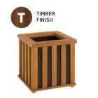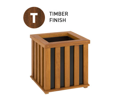 Manufactured from an Iroko timber carcass with an oiled finish. The GRP planter is visible through the gaps and the planter can be manufactured in any RAL colour.