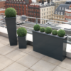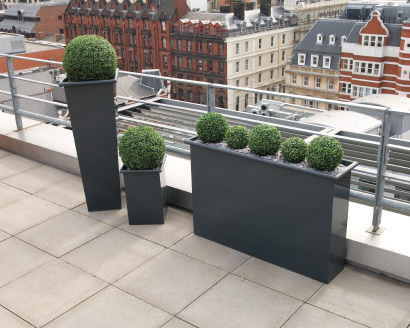 Manufactured from 1-6 to 2 mm alum, spun or fabricated and welded. All joints are fully water tight, available in only a brushed finish they can be powder coated in any RAL colour finish. All brushed planters come with a clear powder coat finish.